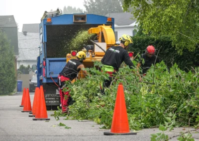 Nous intervenons pour éliminer les branches dangereuses qui pourraient causer des dommages à votre maison, votre toiture, vos fils électriques ou aux passants.